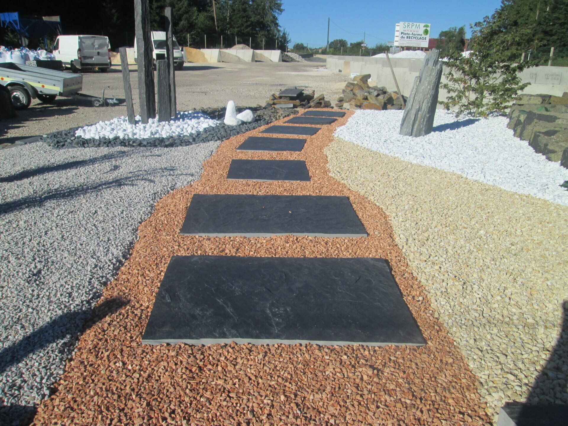 Bute réalisée en concassé calcaire 5/15 et paillette ardoise noire